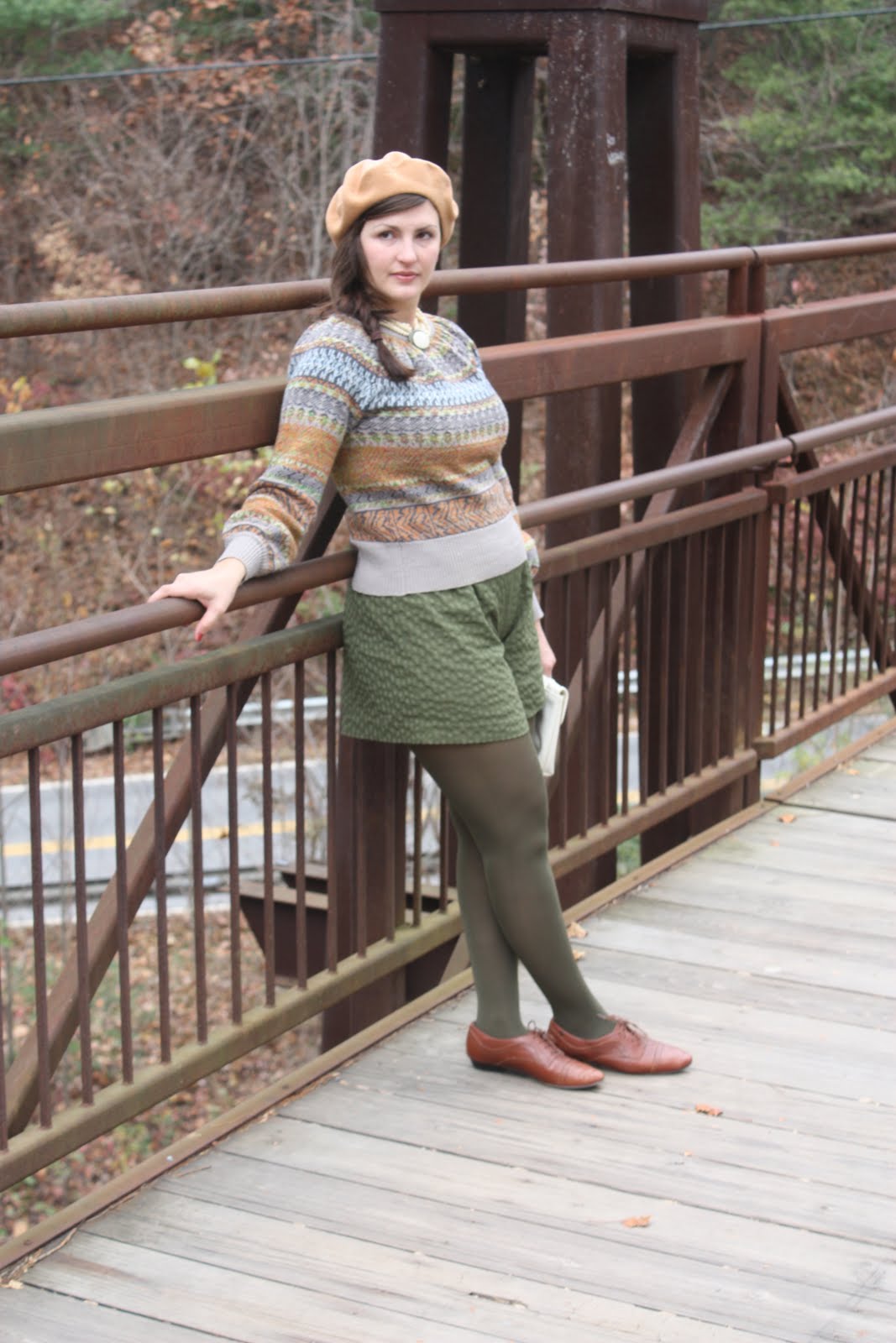 Sweater: Vintage, Romper: Thrifted, Tights: Modcloth, Oxfords: Bass, Necklace & Pin: Vintage, Beret: flea market